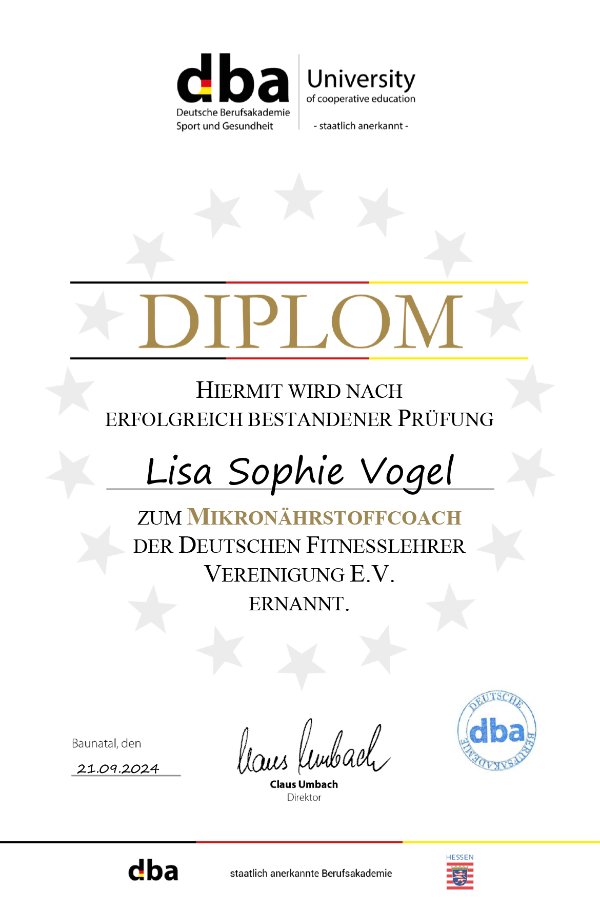 Ich habe einen Bachelorabschluss in Sportwissenschaft mit dem Schwerpunkt Ernährungscoaching in Sport und Therapie. Ergänzt durch Weiterbildungen als Mikronährstoffcoach, Personaltrainerin und Fitnesstrainerin (A-Lizenz) habe ich mir ein fundiertes Wissen angeeignet, das es mir ermöglicht, Menschen individuell und zielgerichtet zu unterstützen. Mein Fokus liegt darauf, gemeinsam Wege zu entwickeln, die zu einem nachhaltig gesünderen Lebensstil führen.